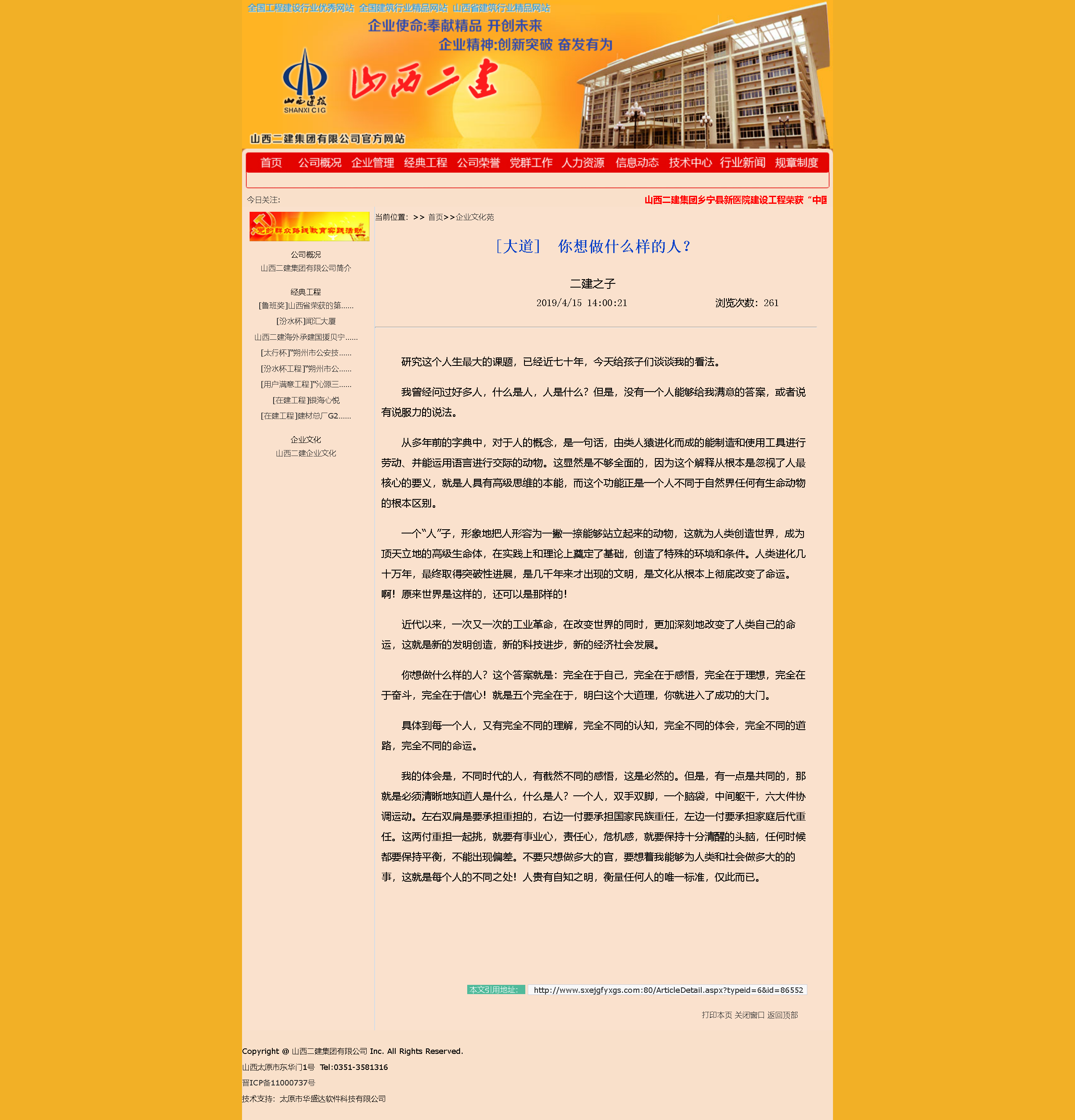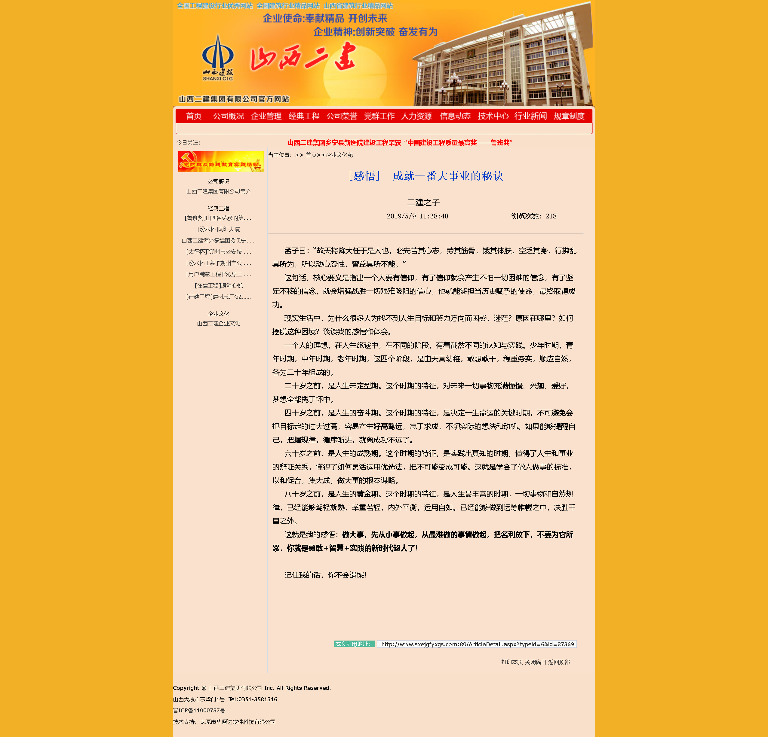 六十多年的社會實踐,豐富的閱歷,逐步形成了只屬于自己的一套做人做事,為人處世的哲學(xué)思想和觀念,可以說是經(jīng)驗總結(jié),給山西二建的青年們分享一下,或許能夠在你困惑與迷茫之中,一定能夠起到豁然開朗,明心明志的作用。