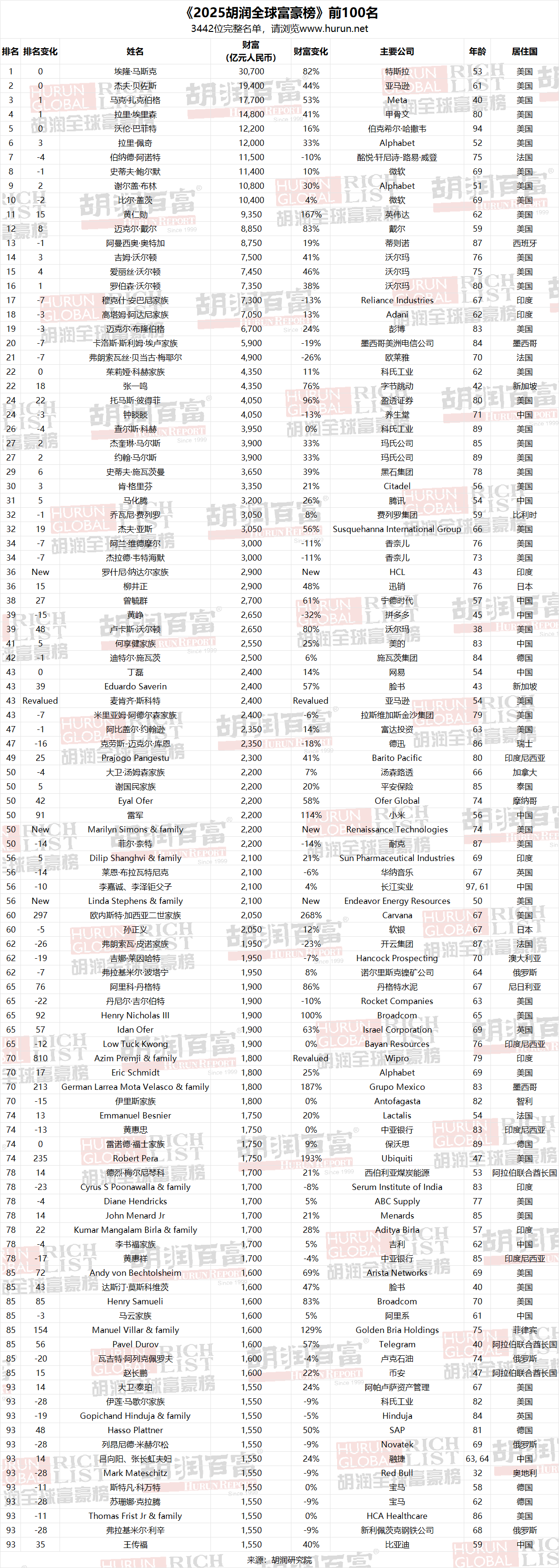 今年3442位世界各國企業家上榜《胡潤全球富豪榜》,是十四年來人數最多的一次。