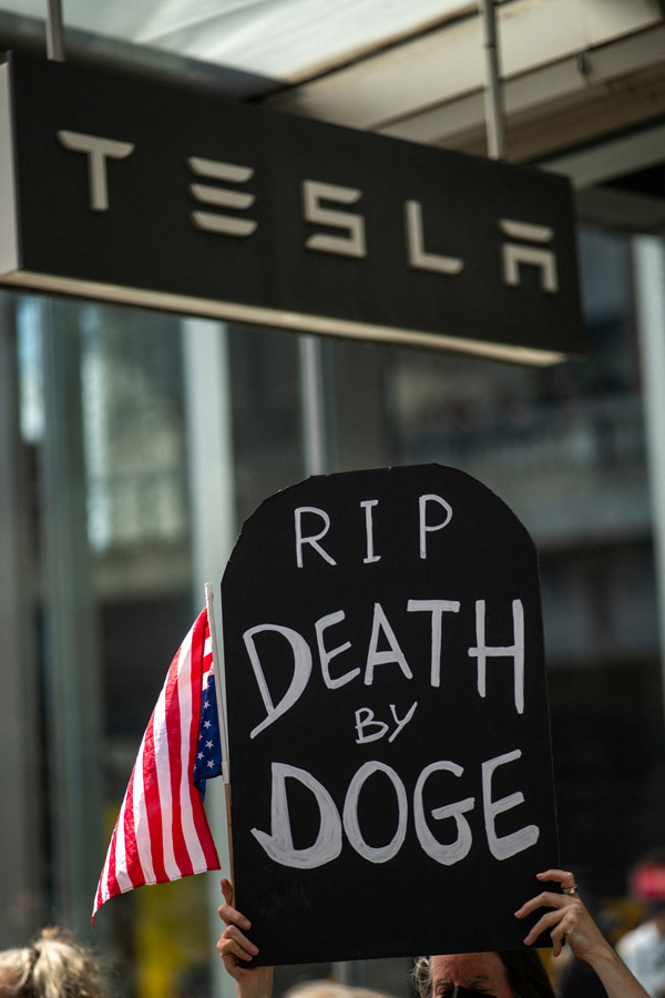 但這種“大刀闊斧”的改革也引發強烈不滿,使馬斯克的特斯拉公司成為眾矢之的。3月29日,一場聲勢浩大的“打倒特斯拉”(Tesla Takedown)抗議活動在美國、加拿大以及歐洲上演。成千上萬名抗議者走上街頭,反對馬斯克及其領導的DOGE削減人道主義援助、關閉聯邦機構并解雇政府雇員的舉措。