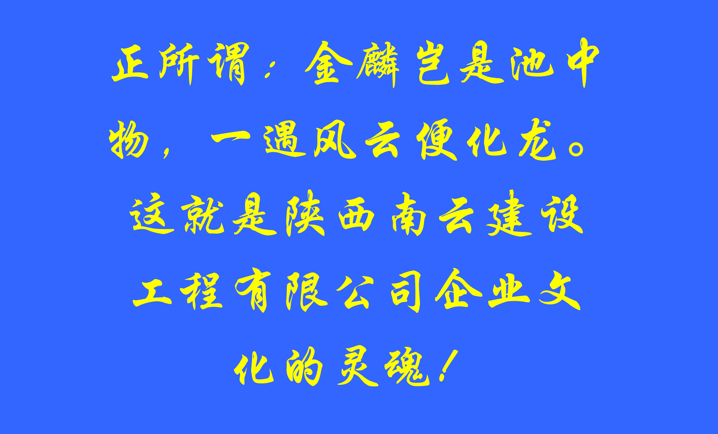 正所謂:金麟豈是池中物,一遇風云便化龍。這就是陜西南云建設工程有限公司企業文化的靈魂!
