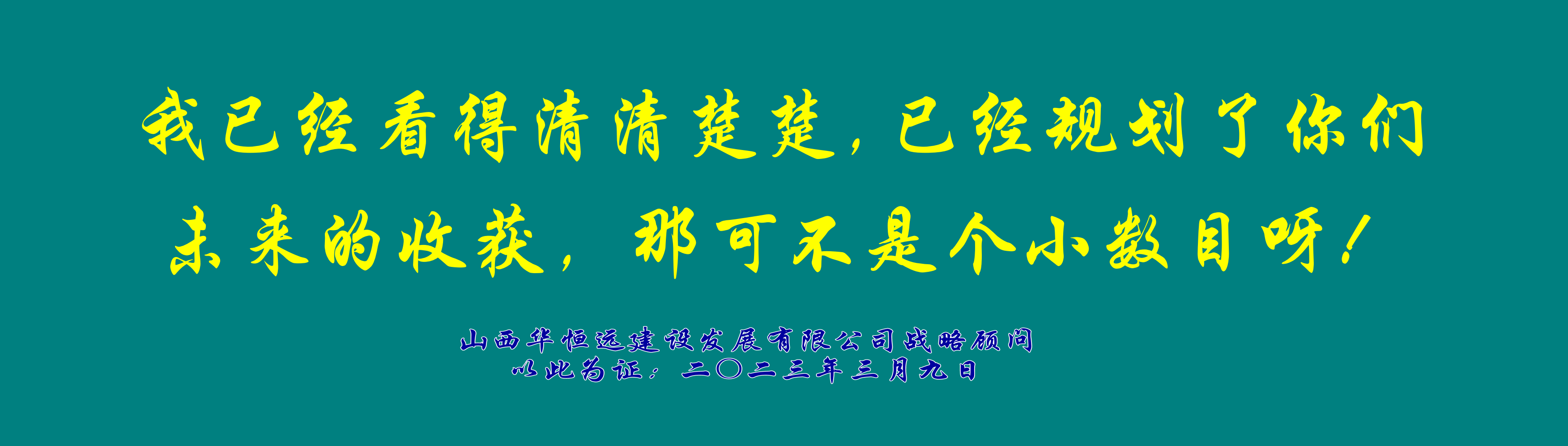 成就未來,就是成就華恒遠!成就華恒遠,就是成就自己一輩子的事業!十年后,大家都是這輩子最大的贏家,因為你們的付出所得到的,是這個偉大企業給你們的豐厚回報!