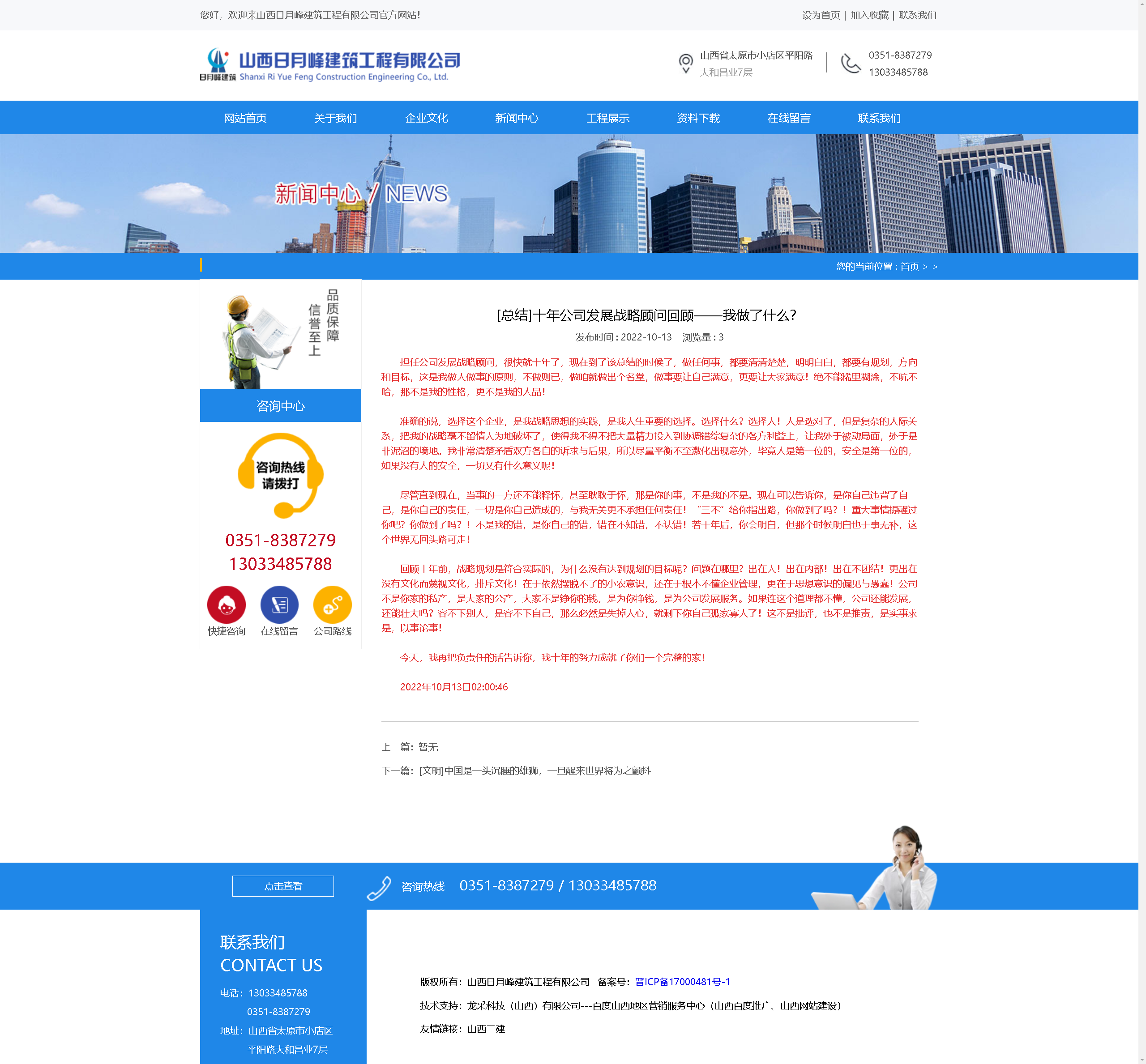 擔(dān)任公司發(fā)展戰(zhàn)略顧問,很快就十年了,現(xiàn)在到了該總結(jié)的時(shí)候了,做任何事,都要清清楚楚,明明白白,都要有規(guī)劃,方向和目標(biāo),這是我做人做事的原則,不做則已,做咱就做出個(gè)名堂,做事要讓自己滿意,更要讓大家滿意!絕不能稀里糊涂,不吭不哈,那不是我的性格,更不是我的人品!