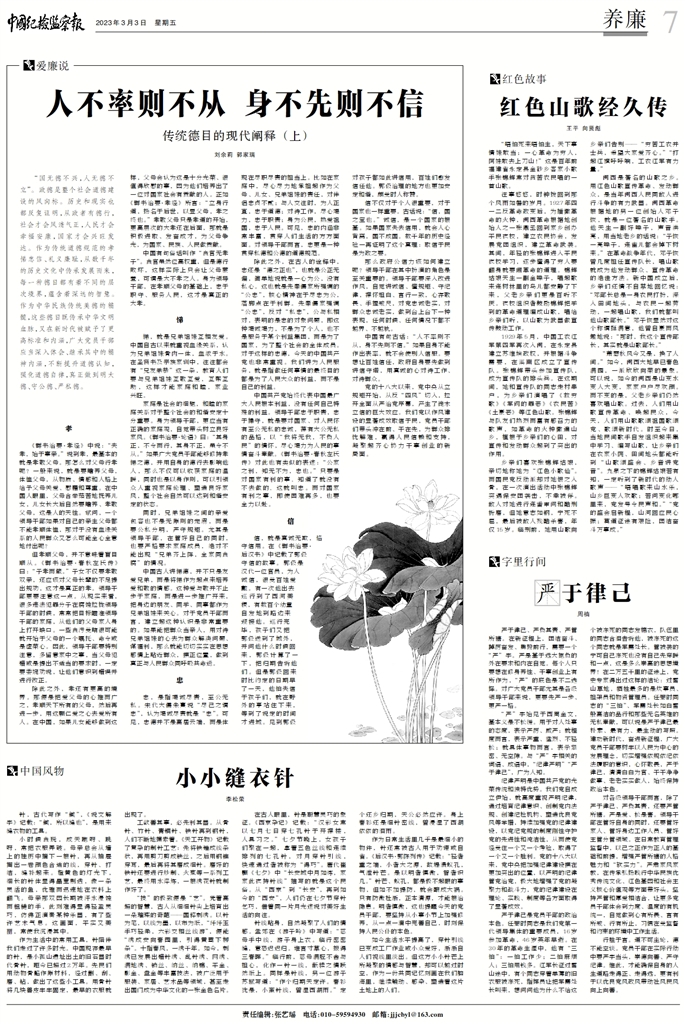 “國無德不興,人無德不立”。政德是整個社會道德建設的風向標。歷史和現實也都反復證明,從政者有德行,社會才會風清氣正,人民才會幸福安康,國家才會興旺發達。作為傳統道德規范的孝悌忠信、禮義廉恥,從數千年的歷史文化中傳承發展而來,每一種德目都有著不同的層次境界,蘊含著深遠的智慧。作為中華民族傳統美德的精髓,這些德目既傳承中華文明血脈,又在新時代被賦予了更高標準和內涵,廣大黨員干部應當深入體會、繼承其中的精神內涵,不斷提升道德認知,強化道德自律,真正做到明大德、守公德、嚴私德。