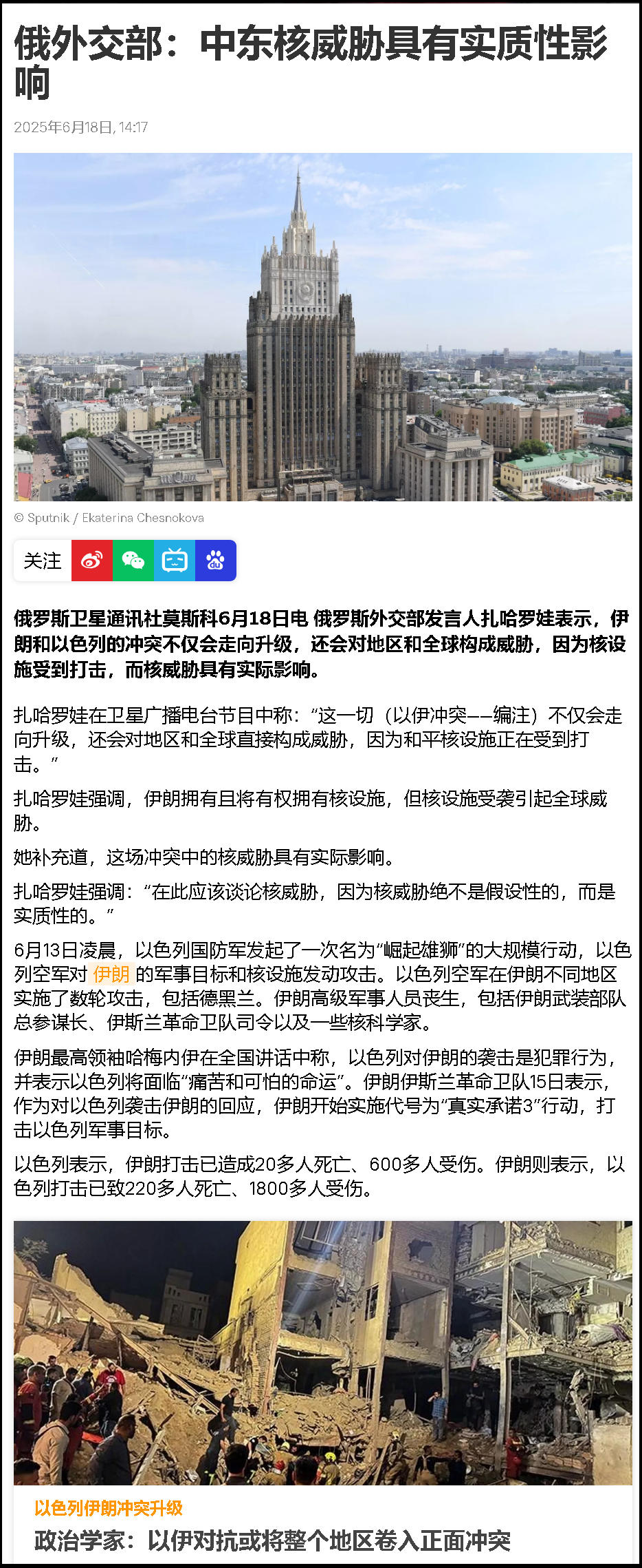 默茨還聲稱,伊朗政權(quán)通過“真主黨、哈馬斯給世界帶來了死亡和破壞”,但如果伊朗愿意回到談判桌上,“就不再需要軍事干預了”,不然“伊朗核計劃被徹底摧毀的可能性已經(jīng)提上議程”。
