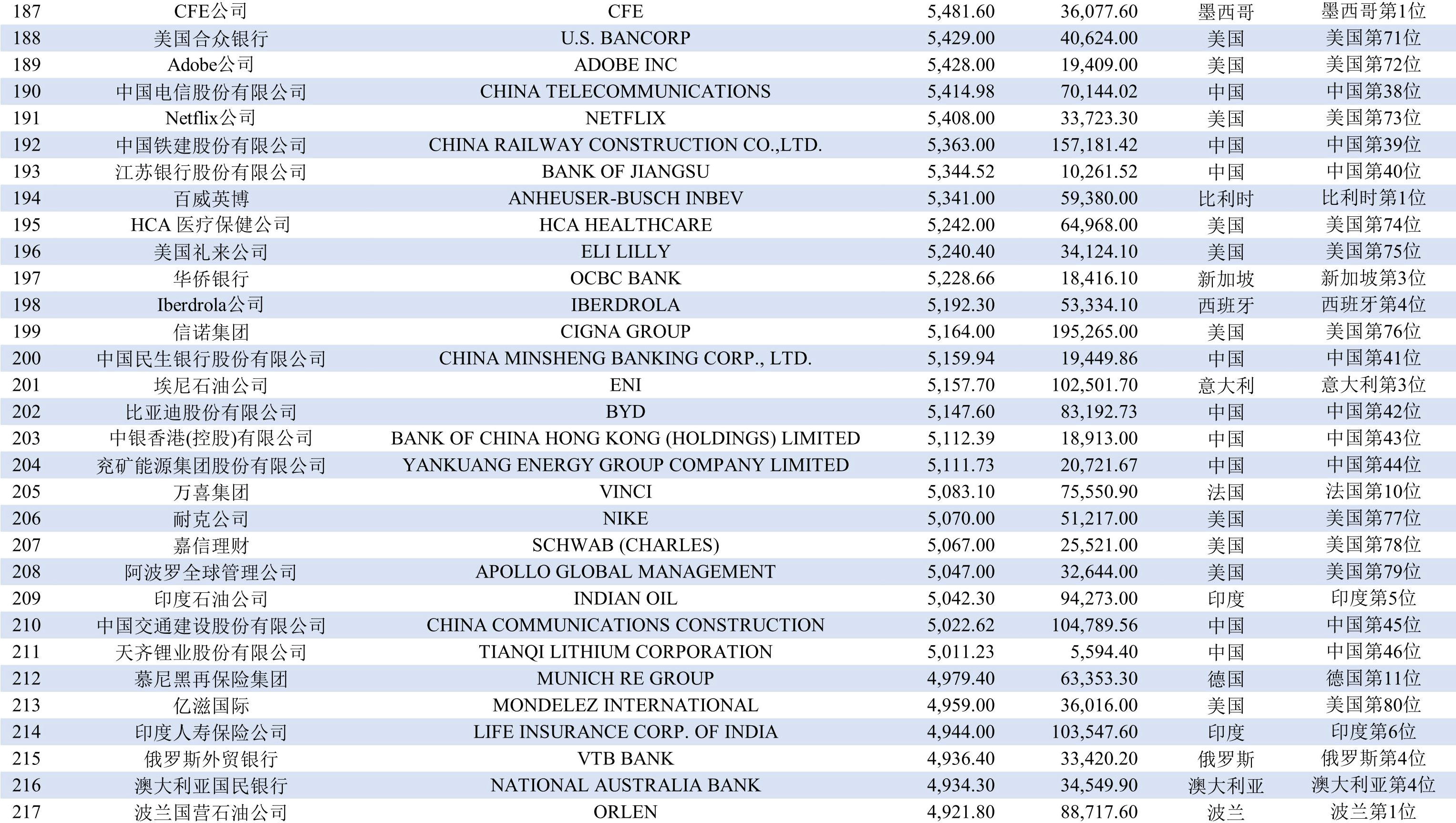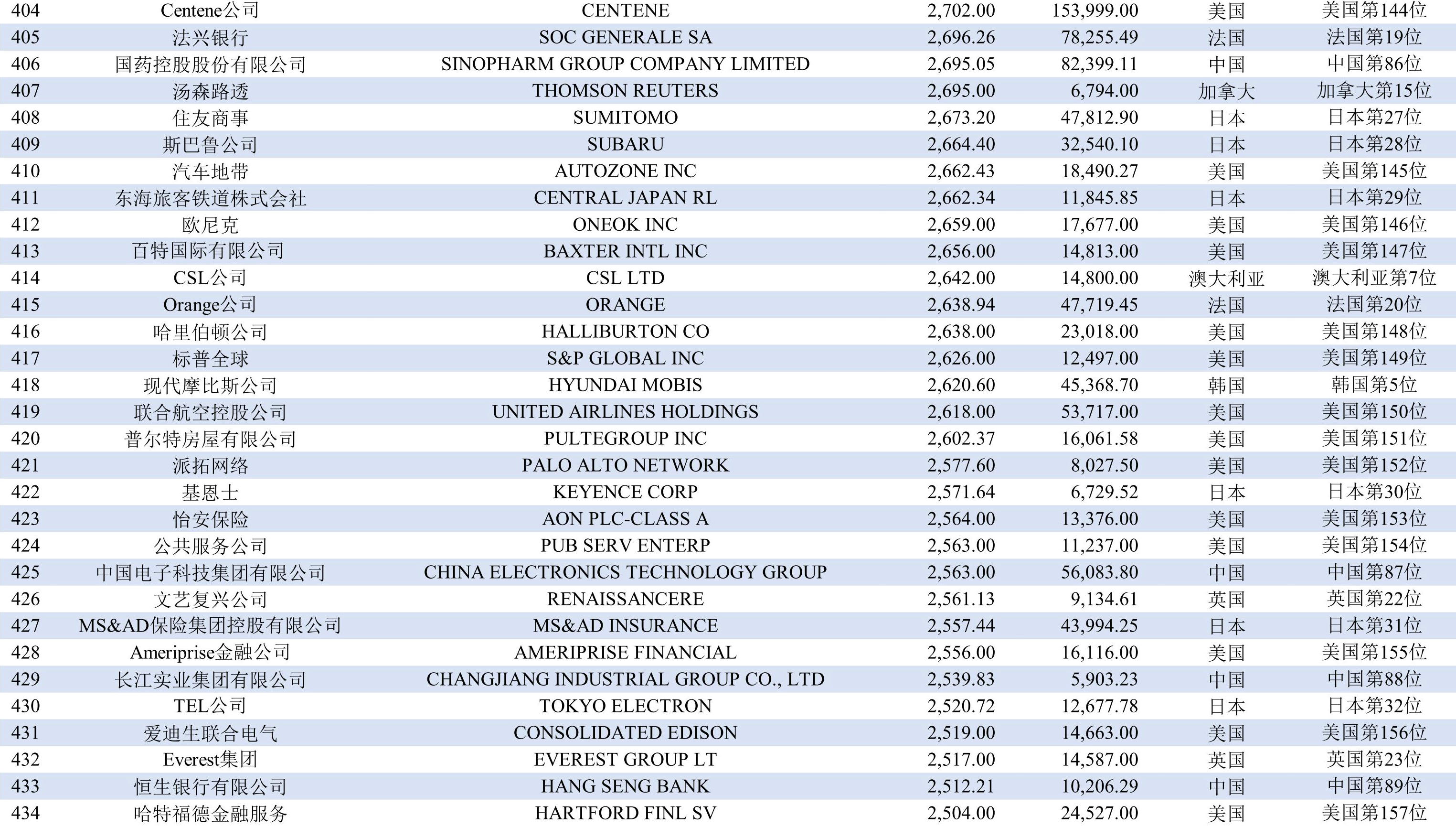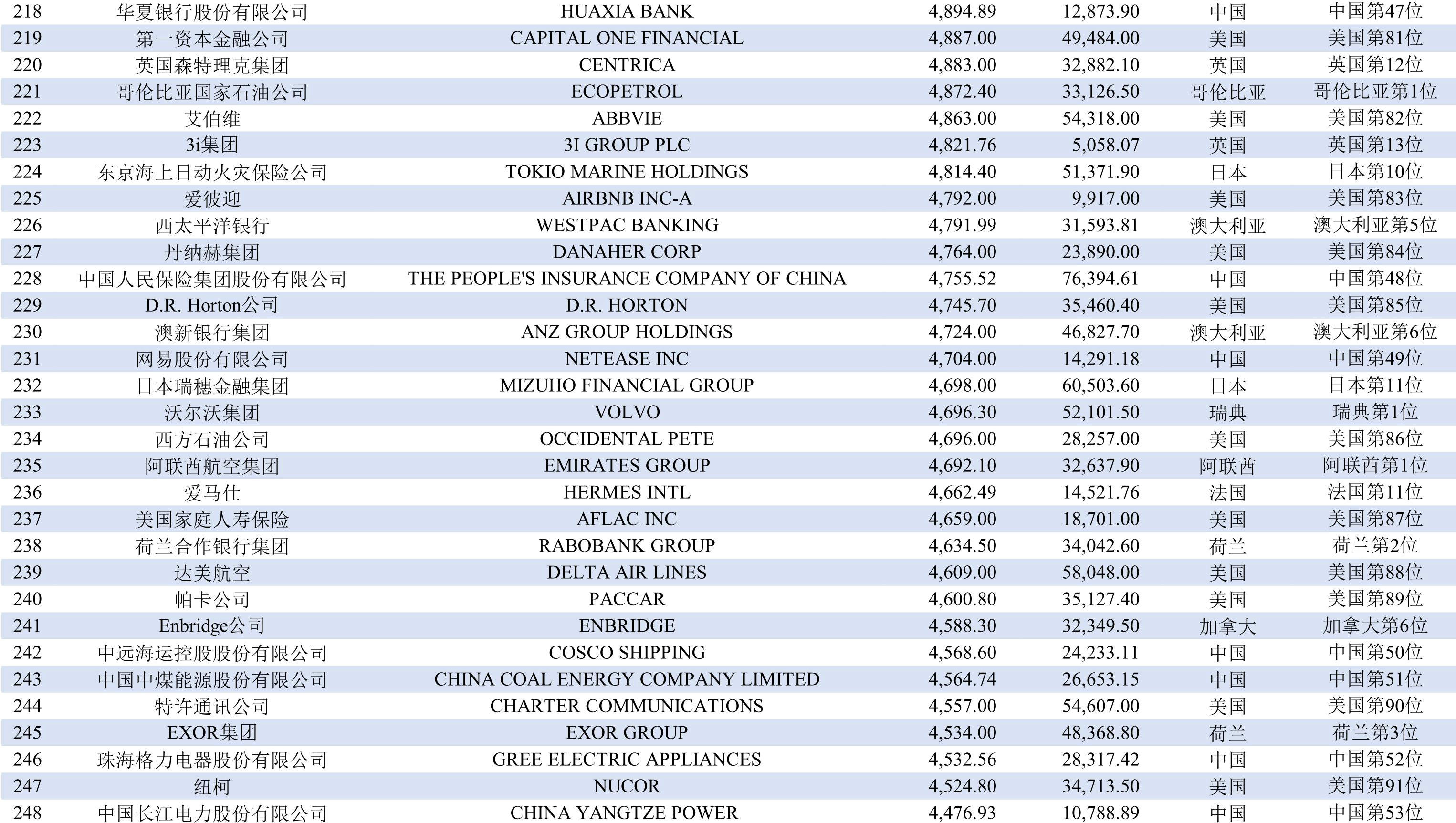 排在第九位的國家有三個,分別是澳大利亞、荷蘭和印度,均有8家上榜企業;排在第十二位至第二十一位的國家分別是巴西、俄羅斯、韓國、西班牙、新加坡、意大利、愛爾蘭、墨西哥、阿聯酋、丹麥,均各有2-6家企業上榜。