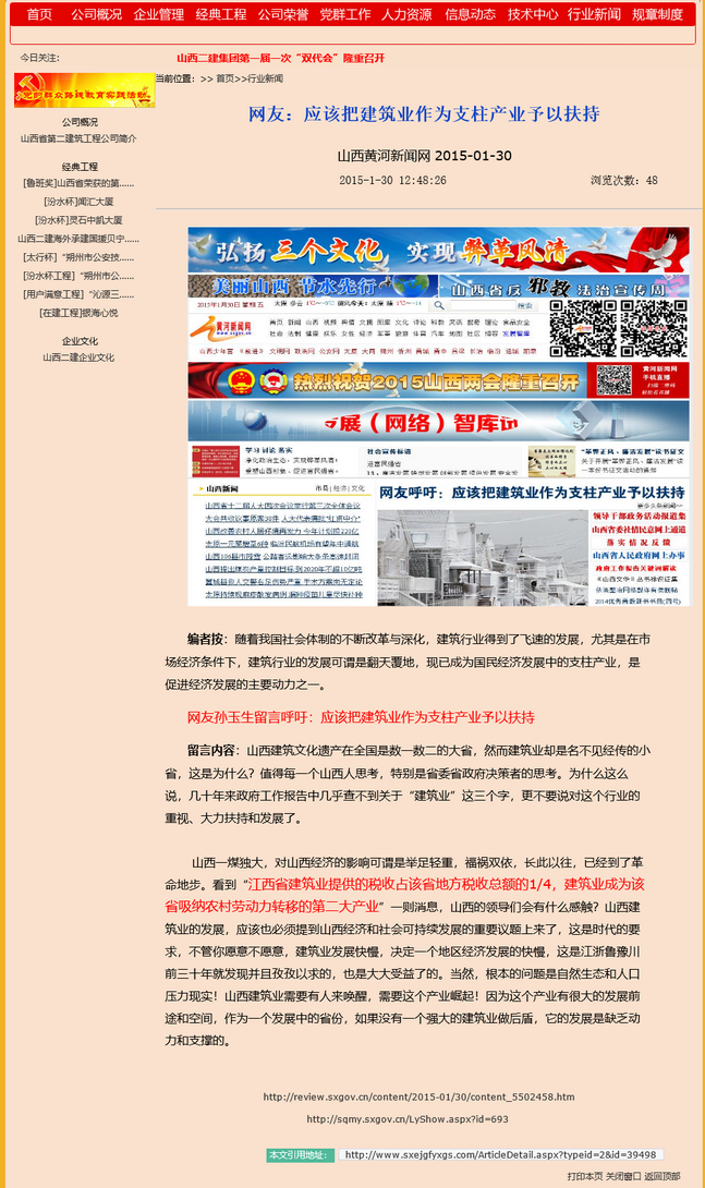 留言內容:山西建筑文化遺產在全國是數一數二的大省,然而建筑業卻是名不見經傳的小省,這是為什么?值得每一個山西人思考,特別是省委省政府決策者的思考。為什么這么說,幾十年來政府工作報告中幾乎查不到關于“建筑業”這三個字,更不要說對這個行業的重視、支持、大力扶持和發展了。山西一煤獨大,對山西經濟的影響可謂是舉足輕重,福禍雙依,長此以往,已經到了革命地步。看到“江西省建筑業提供的稅收占該省地方稅收總額的1/4,建筑業成為該省吸納農村勞動力轉移的第二大產業”一則消息,山西的領導們會有什么感觸?山西建筑業的發展,應該也必須提到山西經濟和社會可持續發展的重要議題上來了,這是時代的要求,不管你愿意不愿意,建筑業發展快慢,決定一個地區經濟發展的快慢,這是江浙魯豫川前三十年就發現并且孜孜以求的,也是大大受益了的。當然,根本的問題是自然生態和人口壓力逼迫的!山西建筑業需要有人來喚醒,需要這個產業崛起!因為這個產業有很大的發展前途和空間,作為一個發展中的省份,如果沒有一個強大的建筑業做后盾,她的發展是缺乏動力和支撐的。