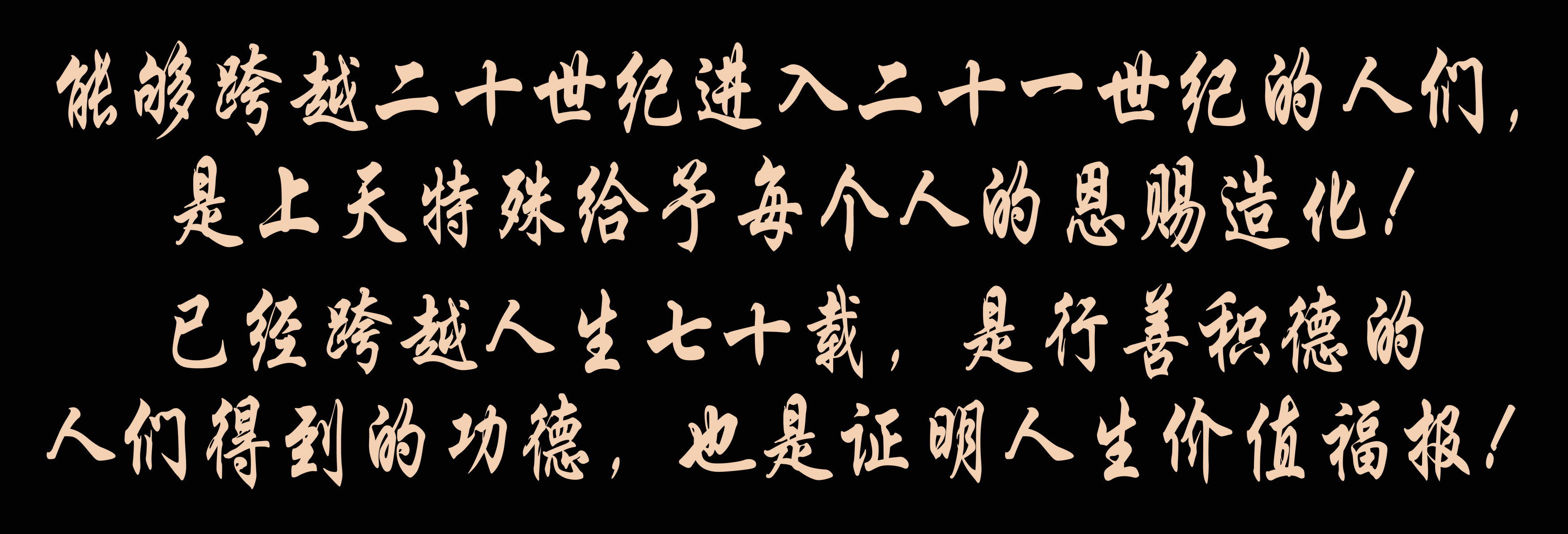 已經(jīng)跨越人生七十載,是行善積德的人們得到的功德,也是證明人生價值福報!