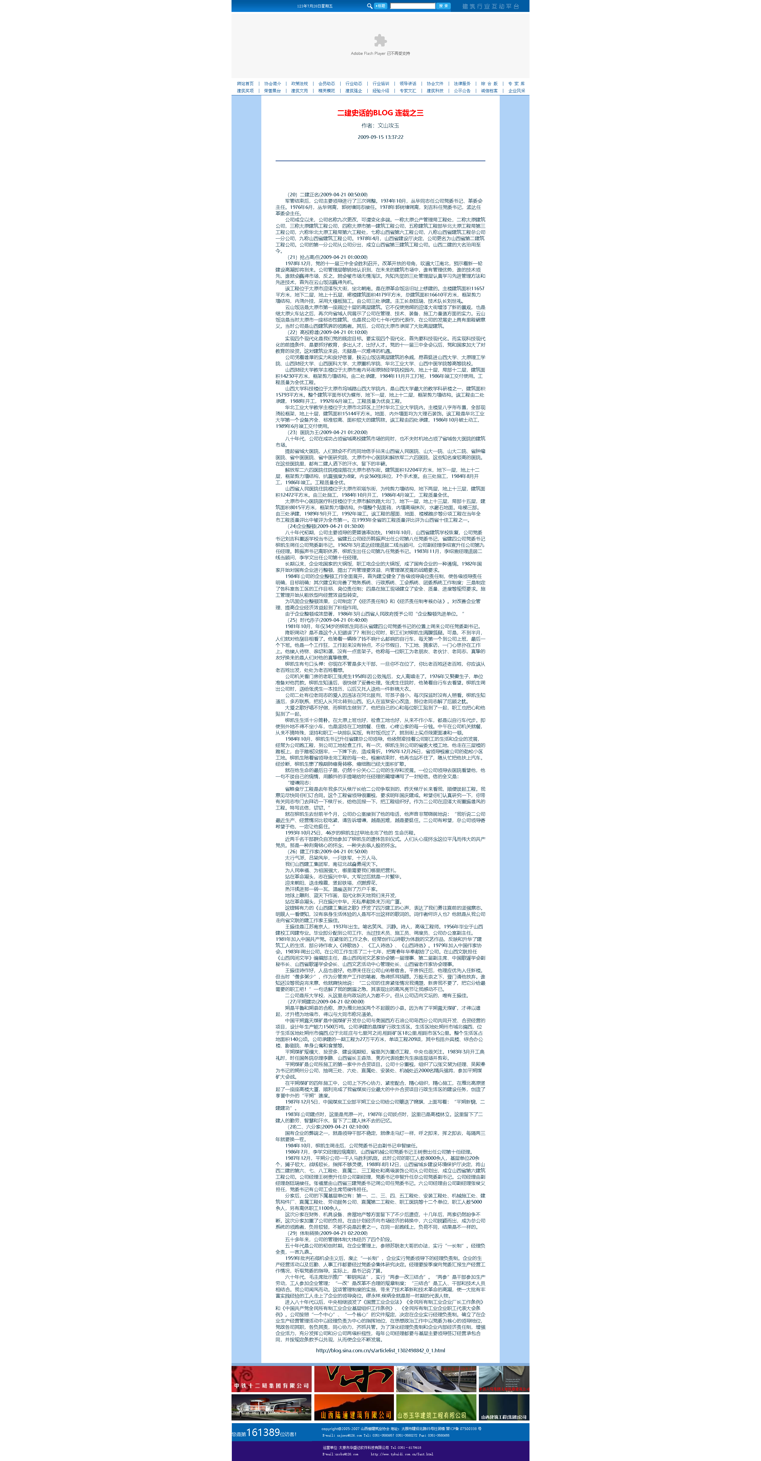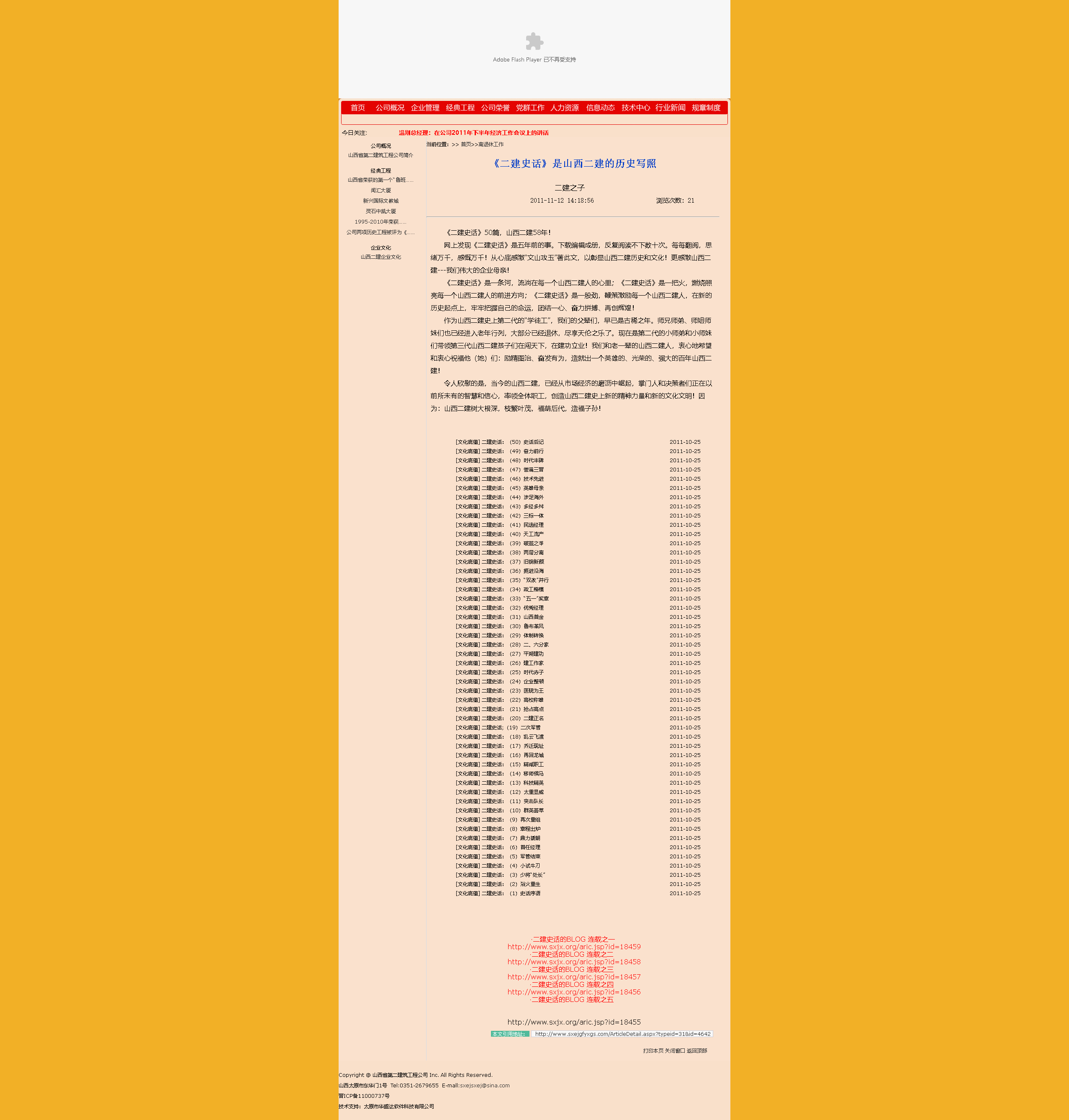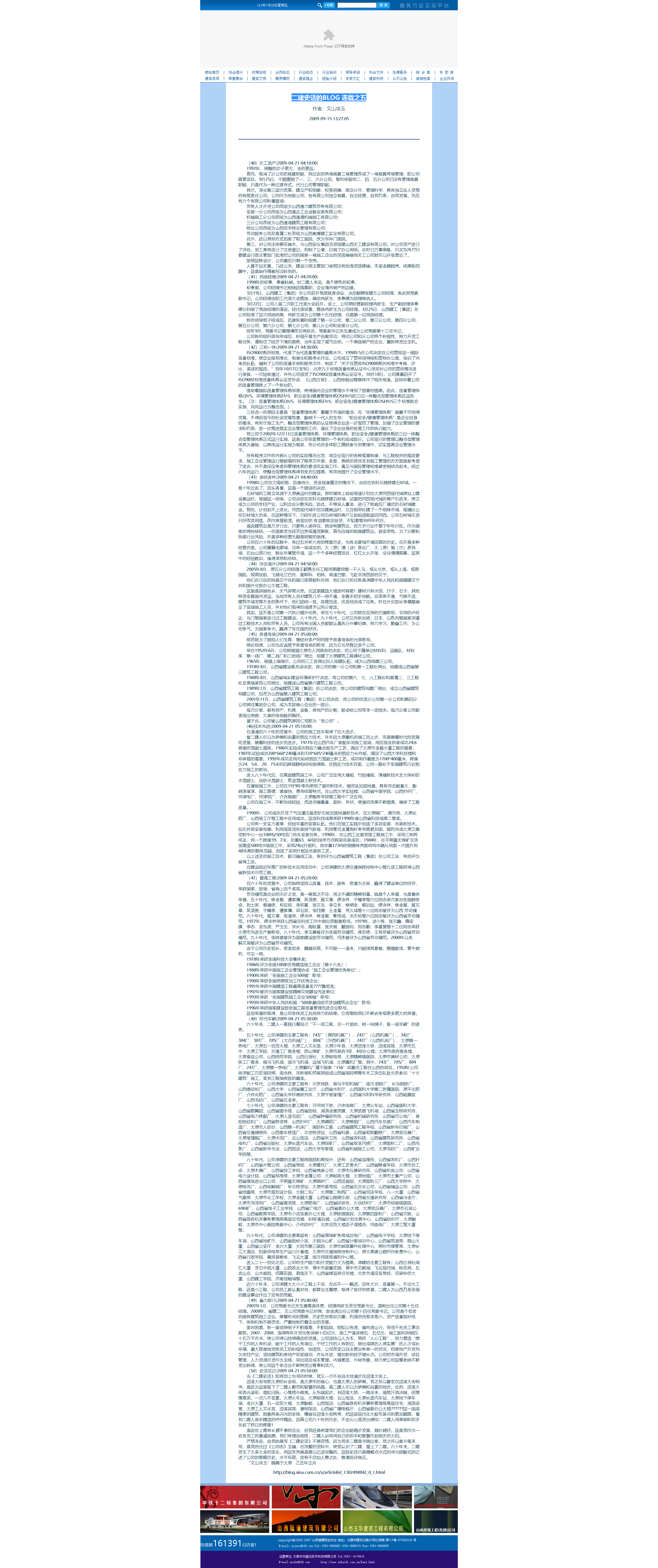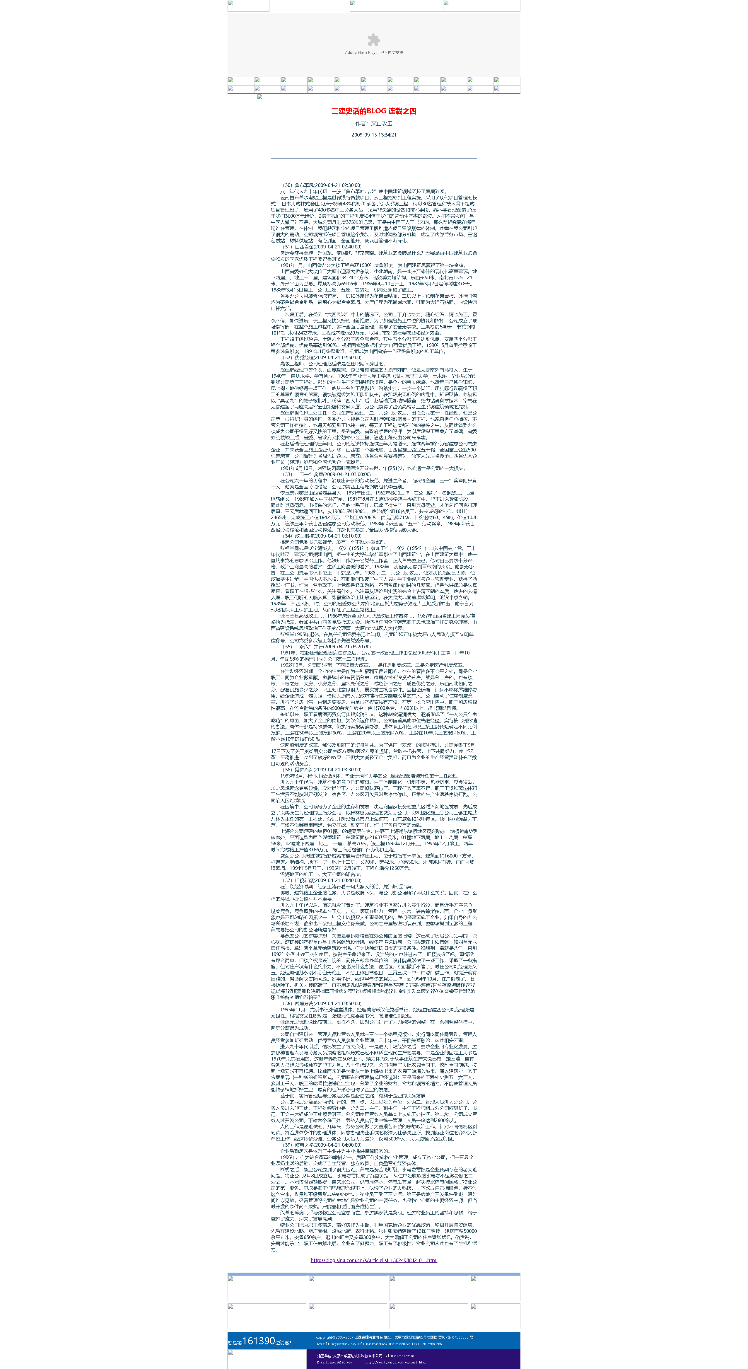 這是2009年9月15日首次在山西省建筑業協會網站全文轉發張文玉同志所撰《二建史話》五十篇。