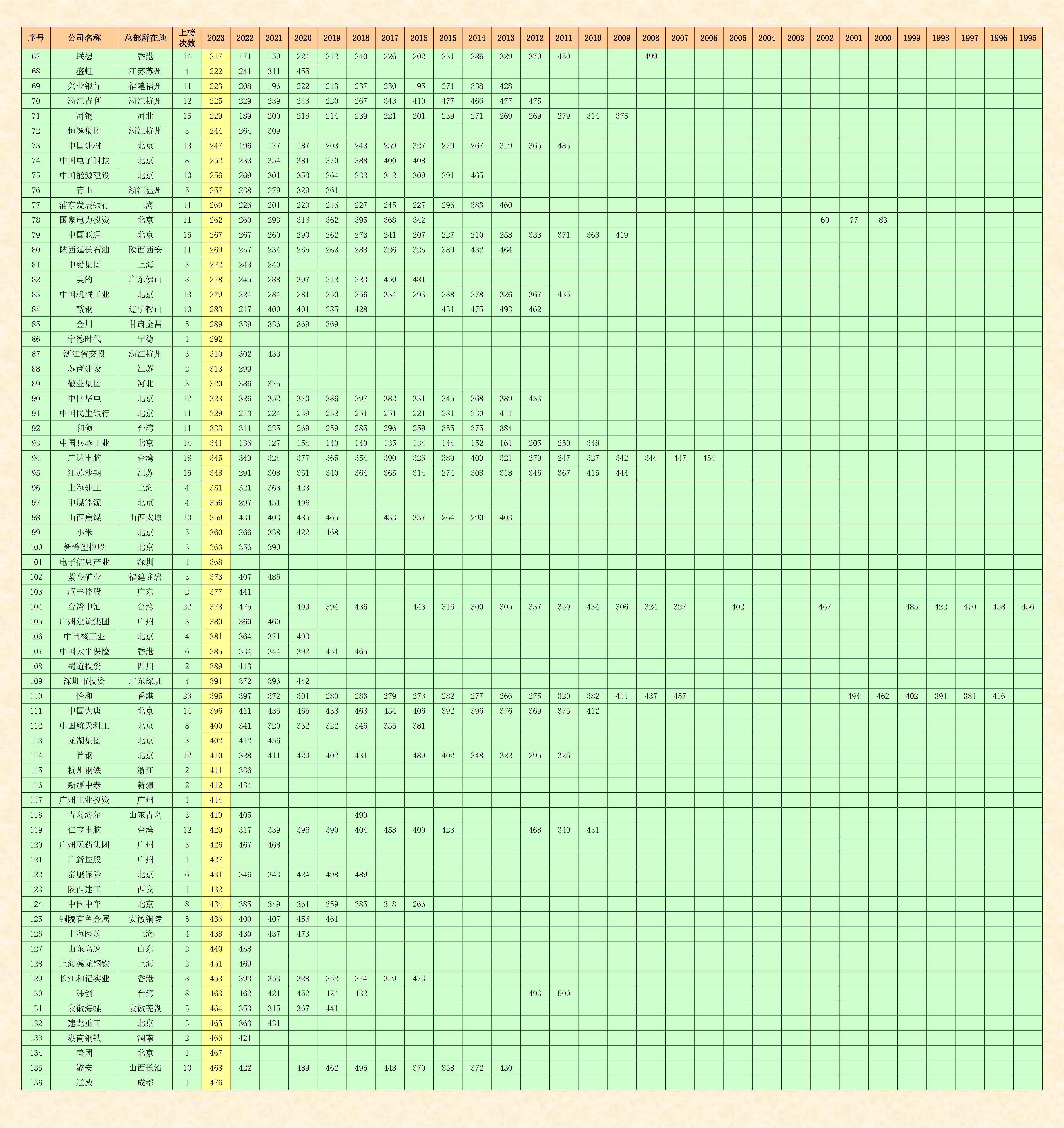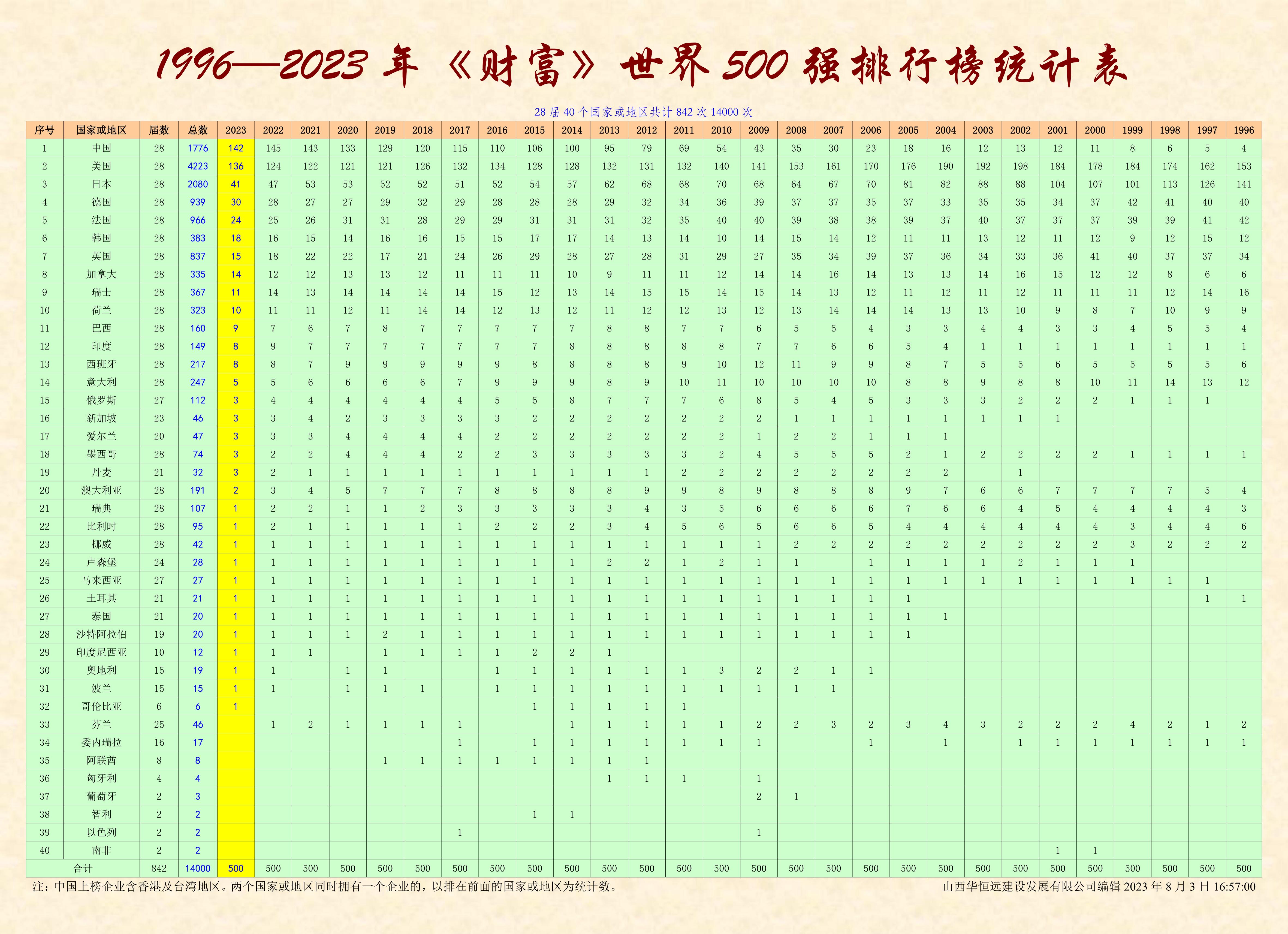 《財富》世界500強雜志社,從1995年開始在中國登陸,已經連續舉辦了29期中文版的世界500強排名榜,我收集到的完整資料,僅缺第一期1995年的全榜單,所以,目前只能編輯二十八期。即1996-2023年《財富》世界500強和中國上榜企業的名單,待日后有機會的話再補齊。