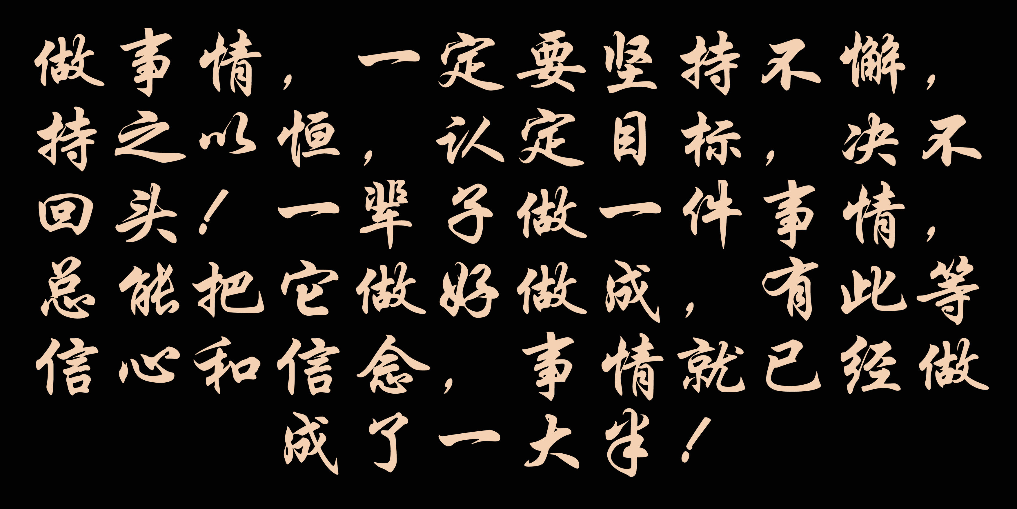 做事情,一定要堅持不懈,持之以恒,認定目標,決不回頭!一輩子做一件事情,總能把它做好做成,有此等信心和信念,事情就已經做成了一大半!