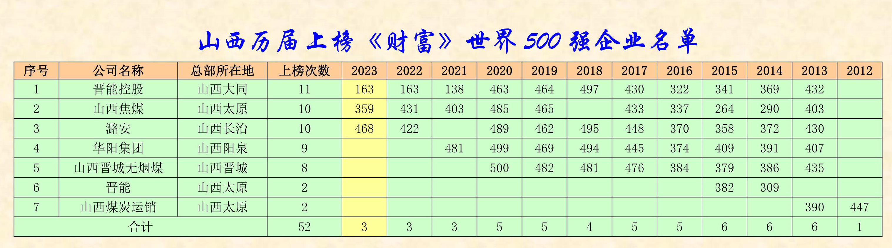 自2012年以來十二年中,上榜《財富》世界500強的山西7家企業(yè)是誰呢!全部是煤炭企業(yè)!