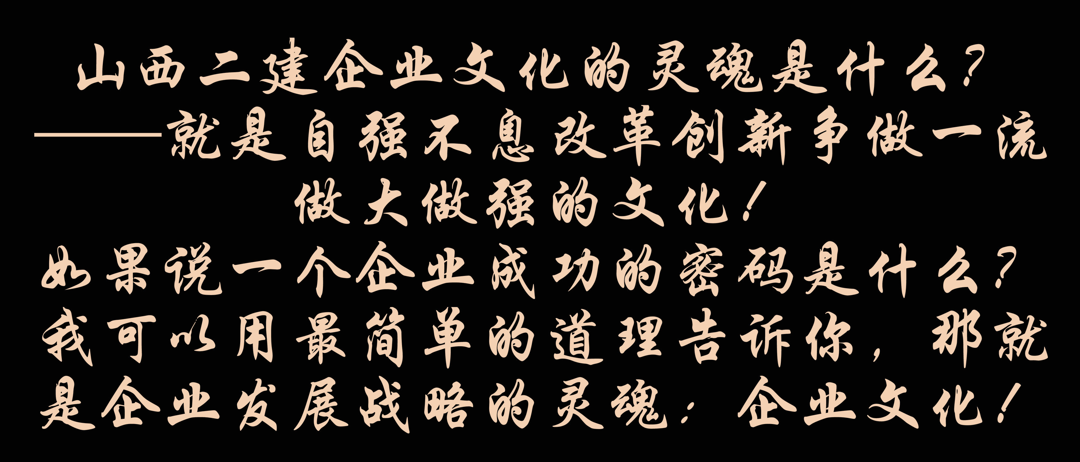 山西二建企業文化的靈魂是什么?——就是自強不息改革創新爭做一流做大做強的文化!