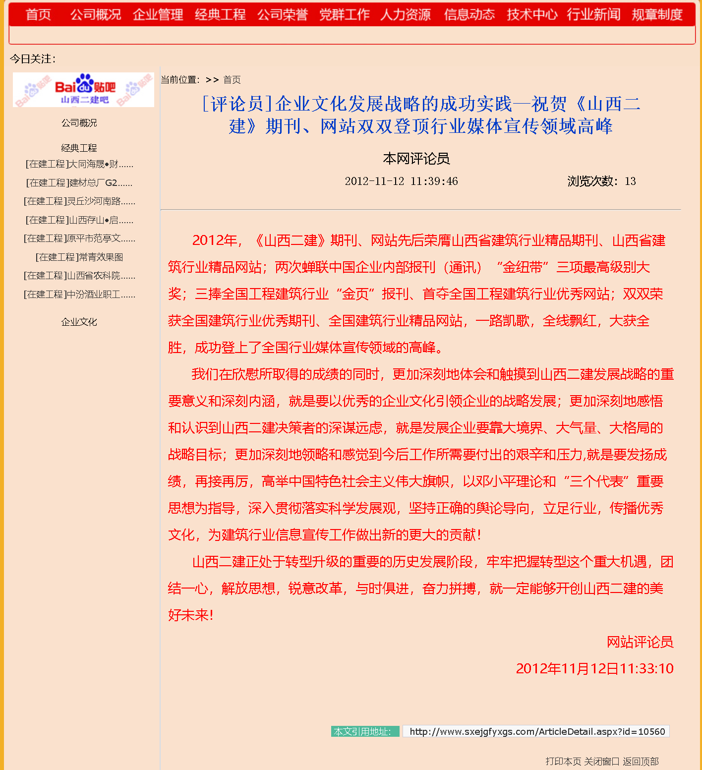 感悟山西二建企業文化成果——網站的特殊作用是推動企業發展壯大