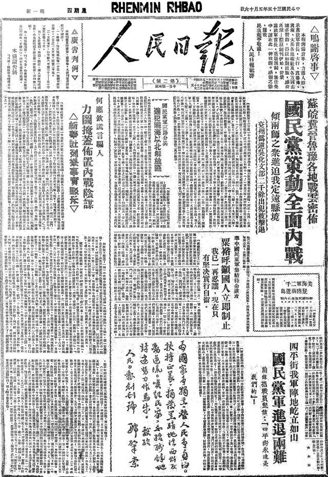 基于此,今天把記錄中華人民共和國歷史建國前夕1946年(文字版)的《人民日報》展現,以饗讀者。