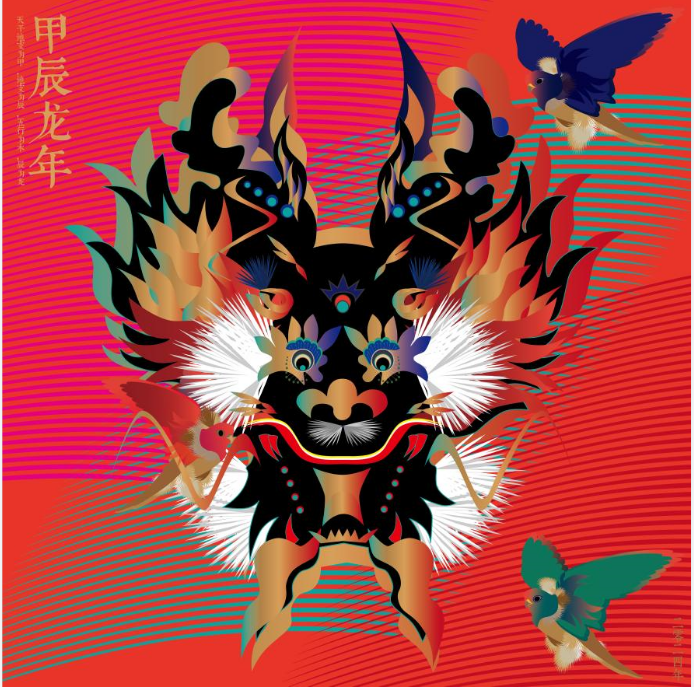 感悟上天恩 五龍降祥瑞 瑞雪兆豐年 甲辰好運來