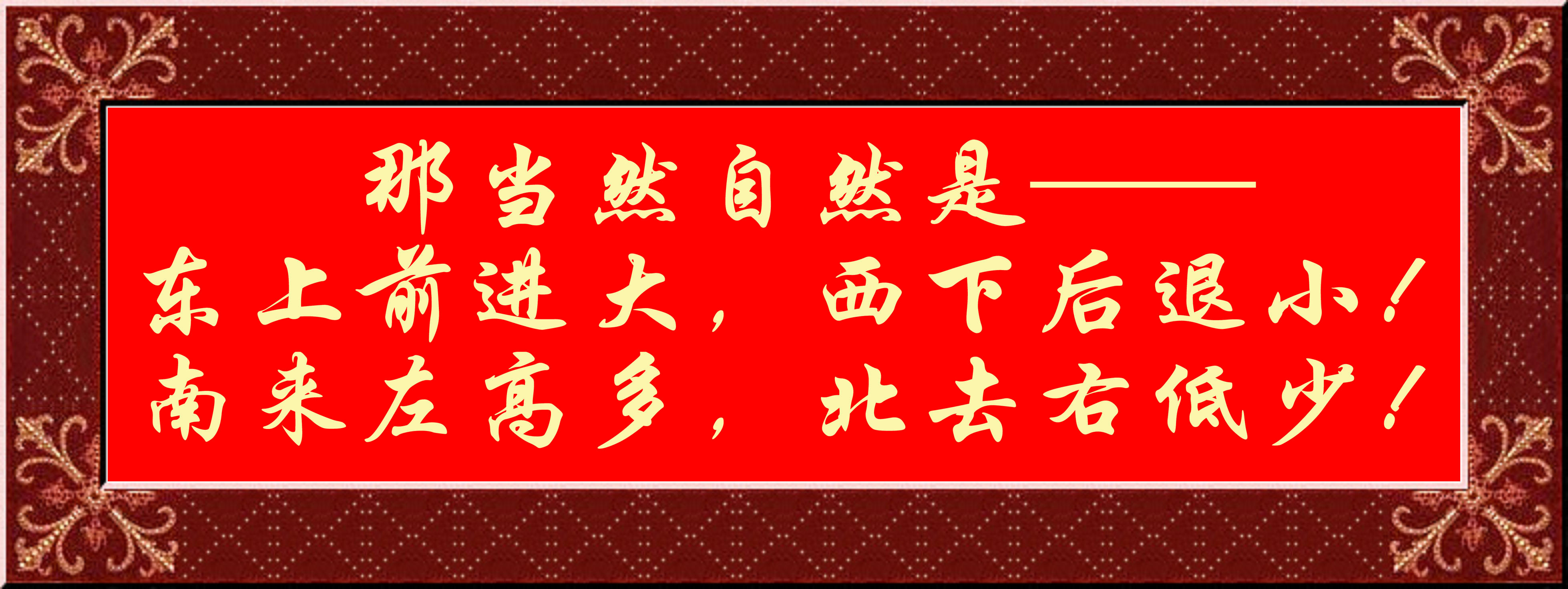 那當然自然是——東上前進大,西下后退小!南來左高多,北去右低少!