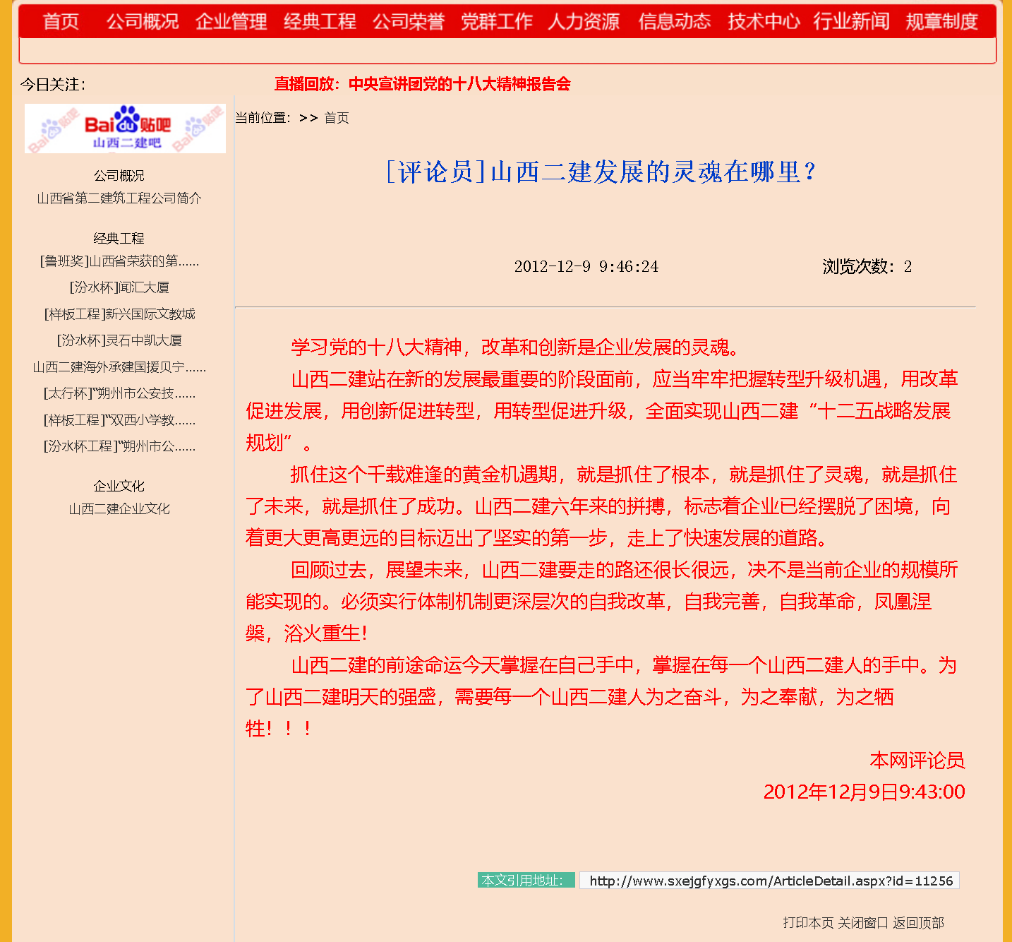 山西二建站在新的發展最重要的階段面前,應當牢牢把握轉型升級機遇,用改革促進發展,用創新促進轉型,用轉型促進升級,全面實現山西二建“十二五戰略發展規劃”。