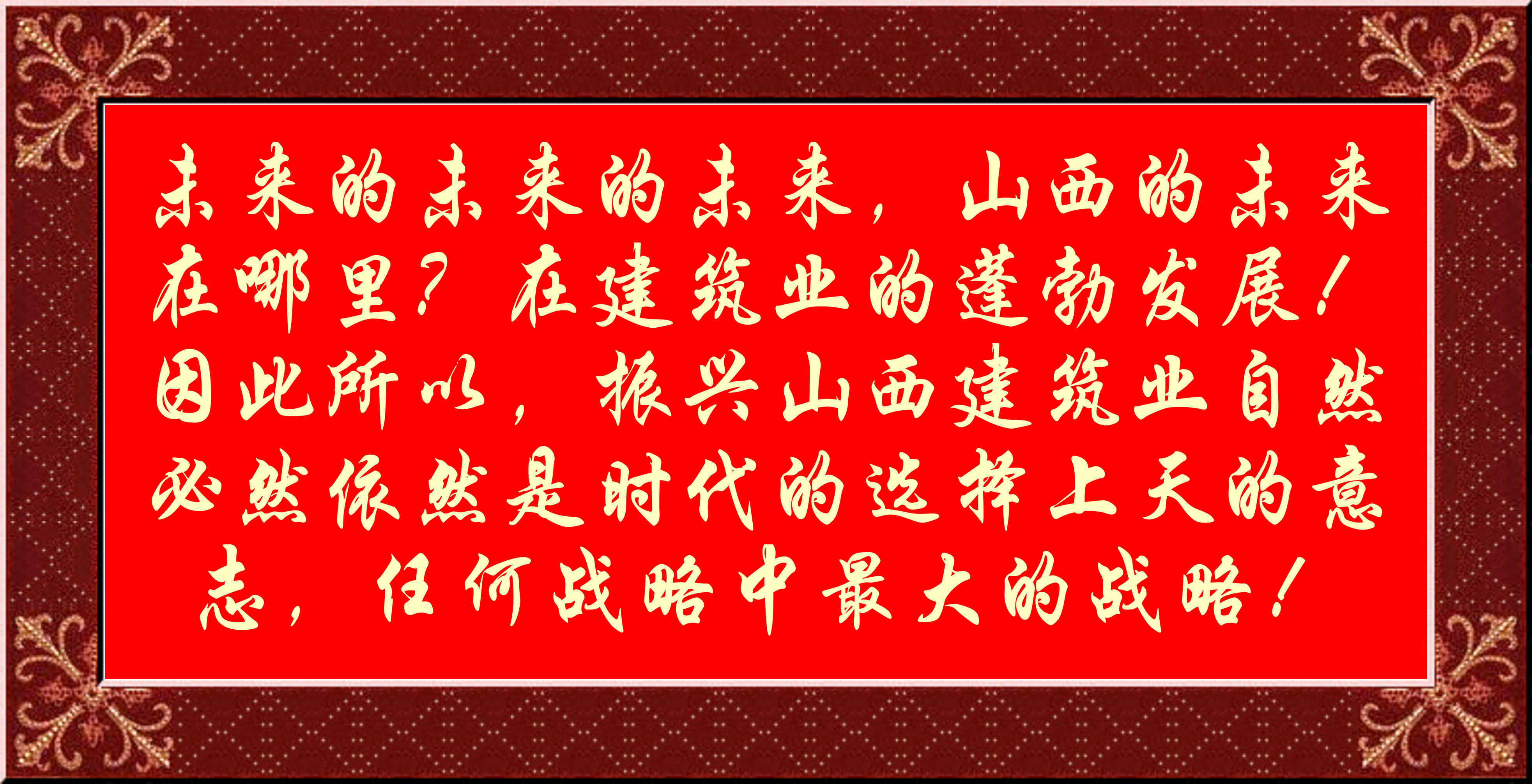 未來的未來的未來,山西的未來在哪里?在建筑業(yè)的蓬勃發(fā)展!因此所以,振興山西建筑業(yè)自然必然依然是時代的選擇上天的意志,任何戰(zhàn)略中最大的戰(zhàn)略!