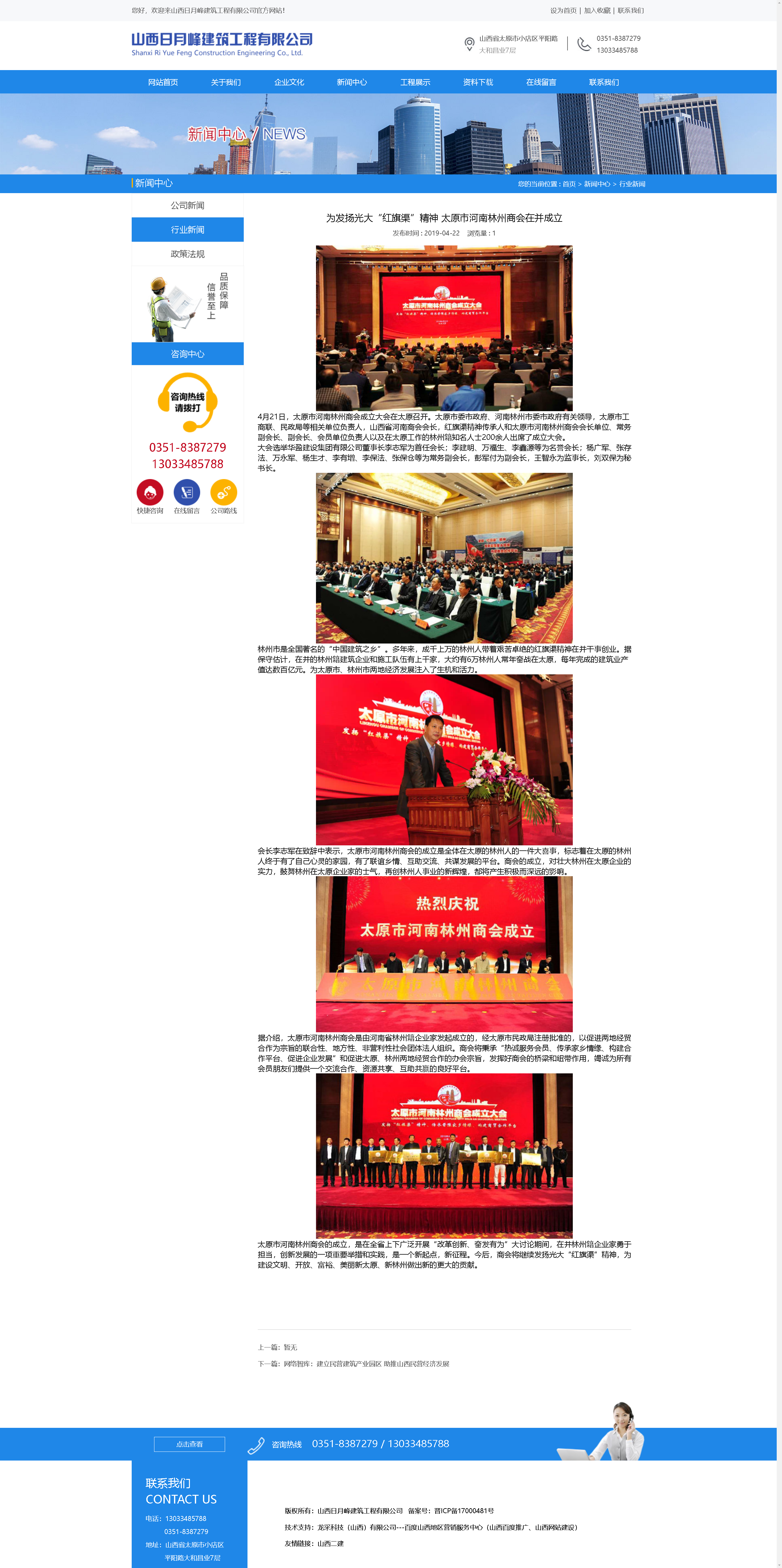 山西日月峰建筑工程有限公司新網站上線