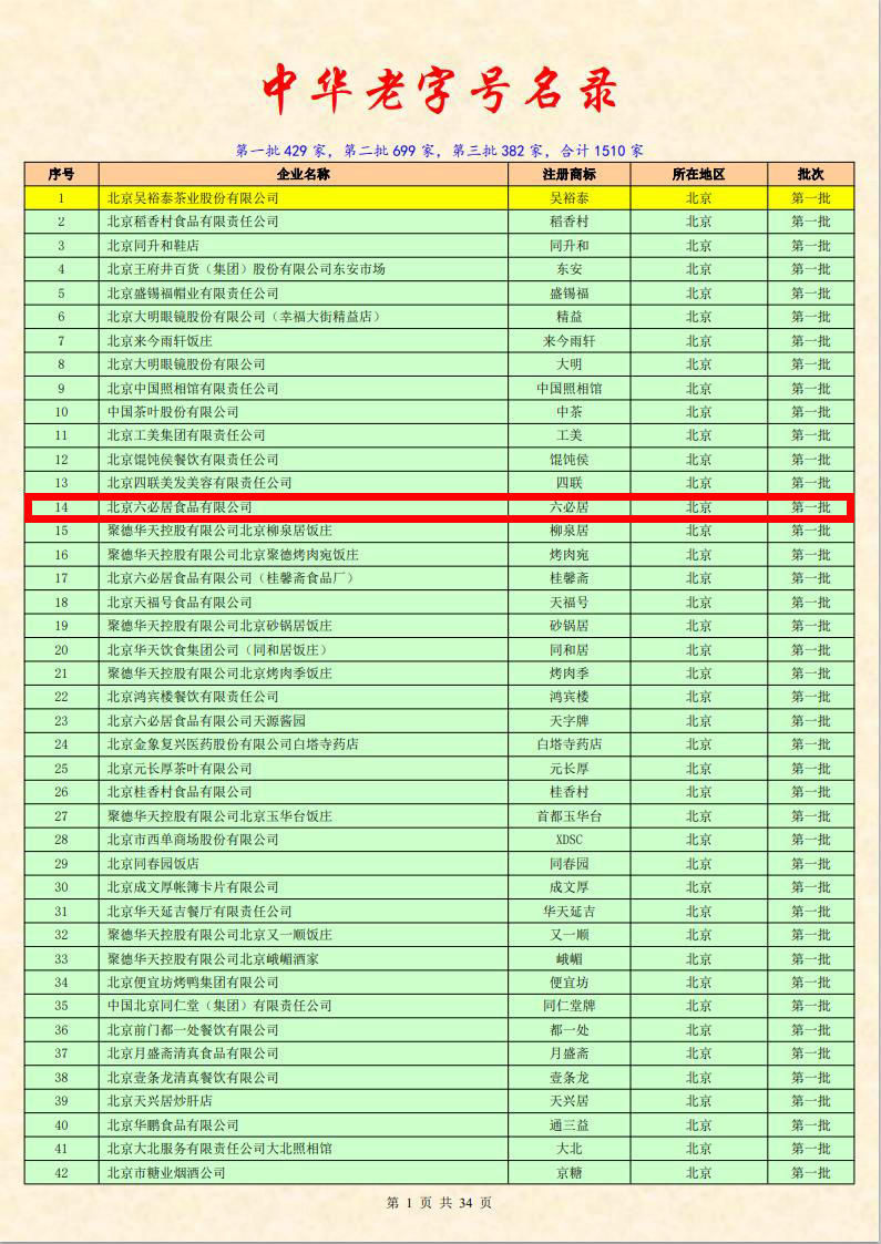 前門外有一條胡同叫糧食店街,臨街有一家店鋪,歷史悠久,聞名遐邇,這就是已有四百十多年歷史的六必居醬園。據史料記載,六必居始建于明朝嘉靖九年(公元1530年),由山西臨汾人趙氏三兄弟創辦。由于趙氏兄弟善于經營,加之六必居開業時所選擇的地理位置好,所以買賣一直很興隆。后來又擴充了門面,由開始時的兩間小店堂,擴充為四間門面,且后邊還增設了加工的作坊,使之生意越做越大。最初,這里是一家酒店,為保證酒味醇香甘美,這家作坊曾制訂了六條操作規則:黍稻必齊,湛之必潔、陶瓷必良、火候必得、水泉必香。“六必居”由此得名。